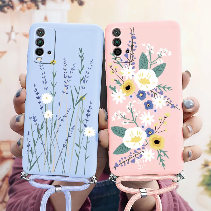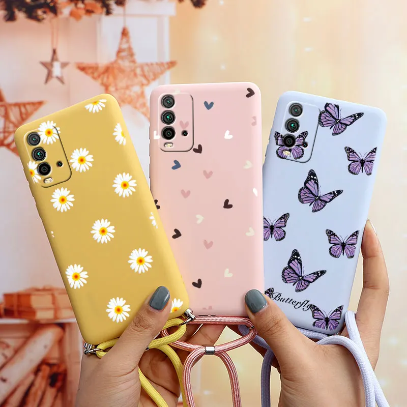 Чехол для Xiaomi Redmi 9 T, Мягкий Силиконовый ТПУ чехол с любовным сердцем для Xiomi Redmi 9 T Power 9Power Lanyard, ожерелье, веревка, бампер, чехол