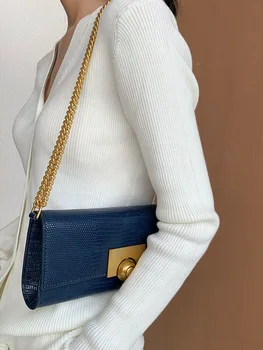 2020 New Retro all-match Lizard Pattern Women Bag\Handbag Leather Fashion Chains Female Shoulder Messenger Bag Long Clutch Trend