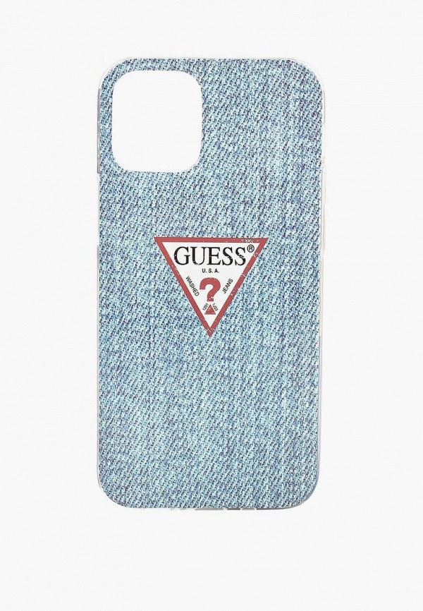 Чехол для iPhone Guess, Голубой, 12 mini, Denim Triangle logo Light blue