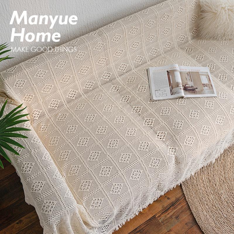 Чехол из необработанного белого вязаного кружева, чехол для дивана с геометрическим узором для гостиной, полотенце с покрытием, летнее и весеннее полотенце 130x180cm