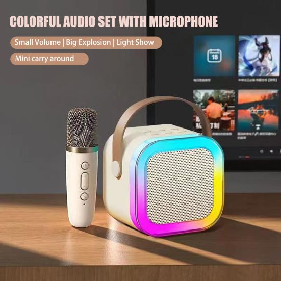 Мини-караоке-машина Yousheng с микрофоном, совместимая с Bluetooth, 5 звуковыми эффектами, мощный компактный портативный комплект колонок для караоке 1pc розовый