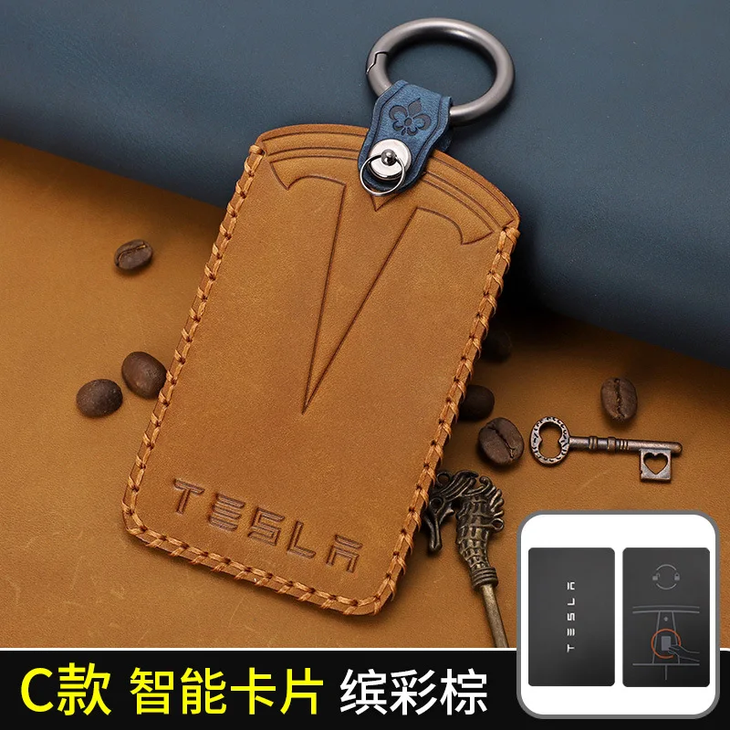 Чехол из 2021 натуральной кожи и кольцо для ключей, защитный чехол-кошелек для автомобиля, аксессуары для Tesla Model 3 Y S X