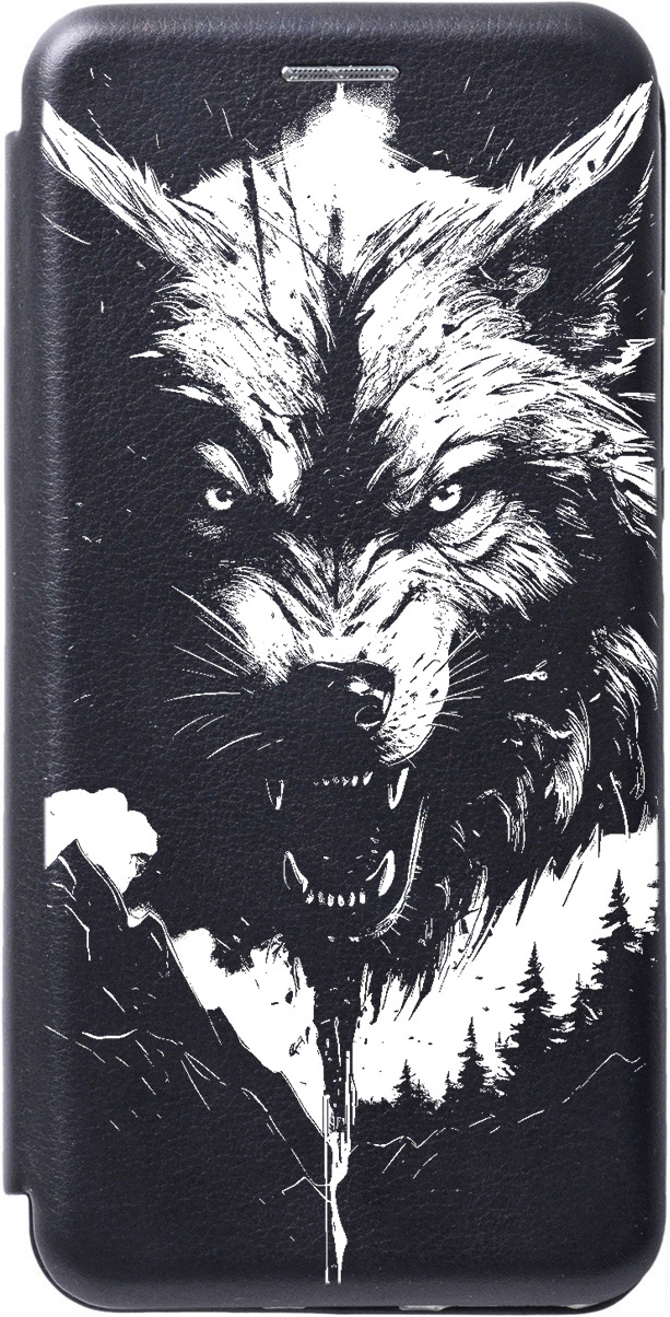 Чехол-книжка на Samsung Galaxy S24+ с рисунком "Волк и горы" черный, Черный;белый, 20011910