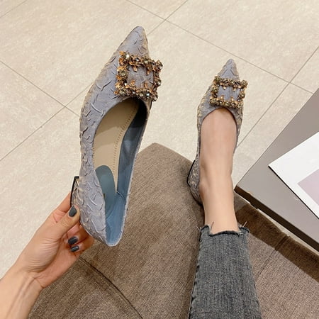 Women‘s Pointed Toe Low Chunky Heels Solid Color Square Rhinestone Decor Shoes Casual Slip On Shoes