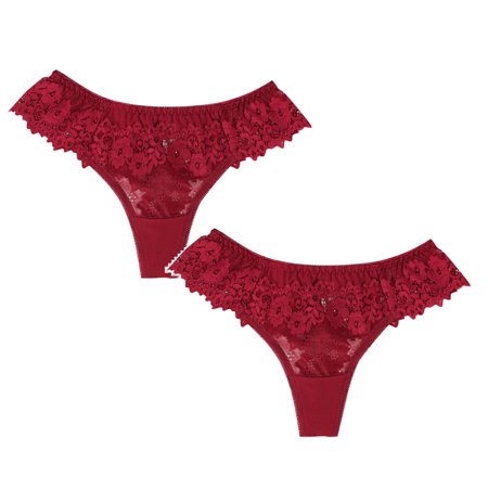 Womens Underwear Brief Comfortable Lace Thong Low Waist Cotton Crotch Panties2PC