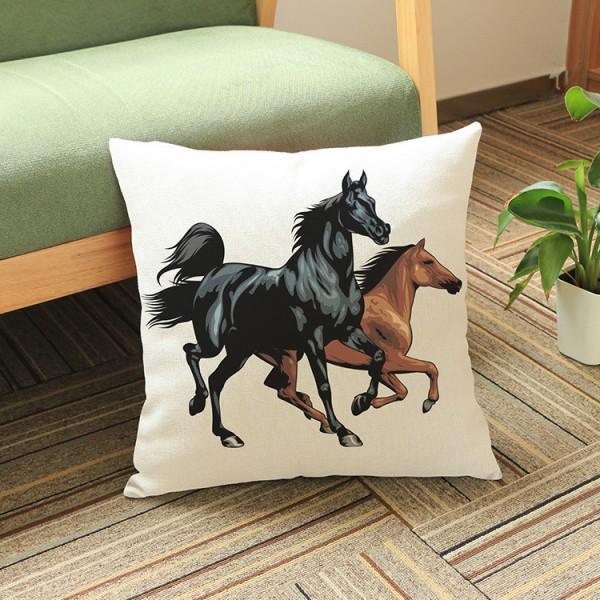 Чехол на подушку с изображением лошади, хлопок, лен, бежевый диван, декоративные наволочки, наволочки с изображением животных, черная лошадь, наволочка для талии, спинки автокресла 450mm*450mm