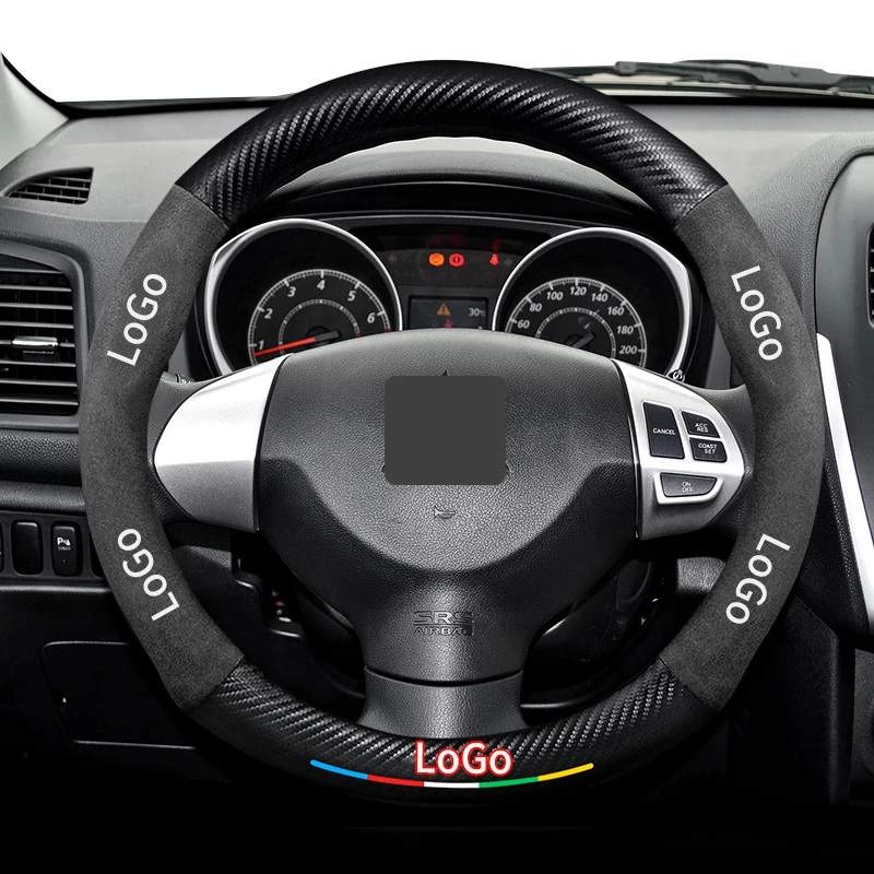 Чехол на руль из углеродного волокна, 38 см, круглая форма, замша, кожа, чехол на автомобильное колесо для Mitsubishi Eclipse Outlander L200 Mirage