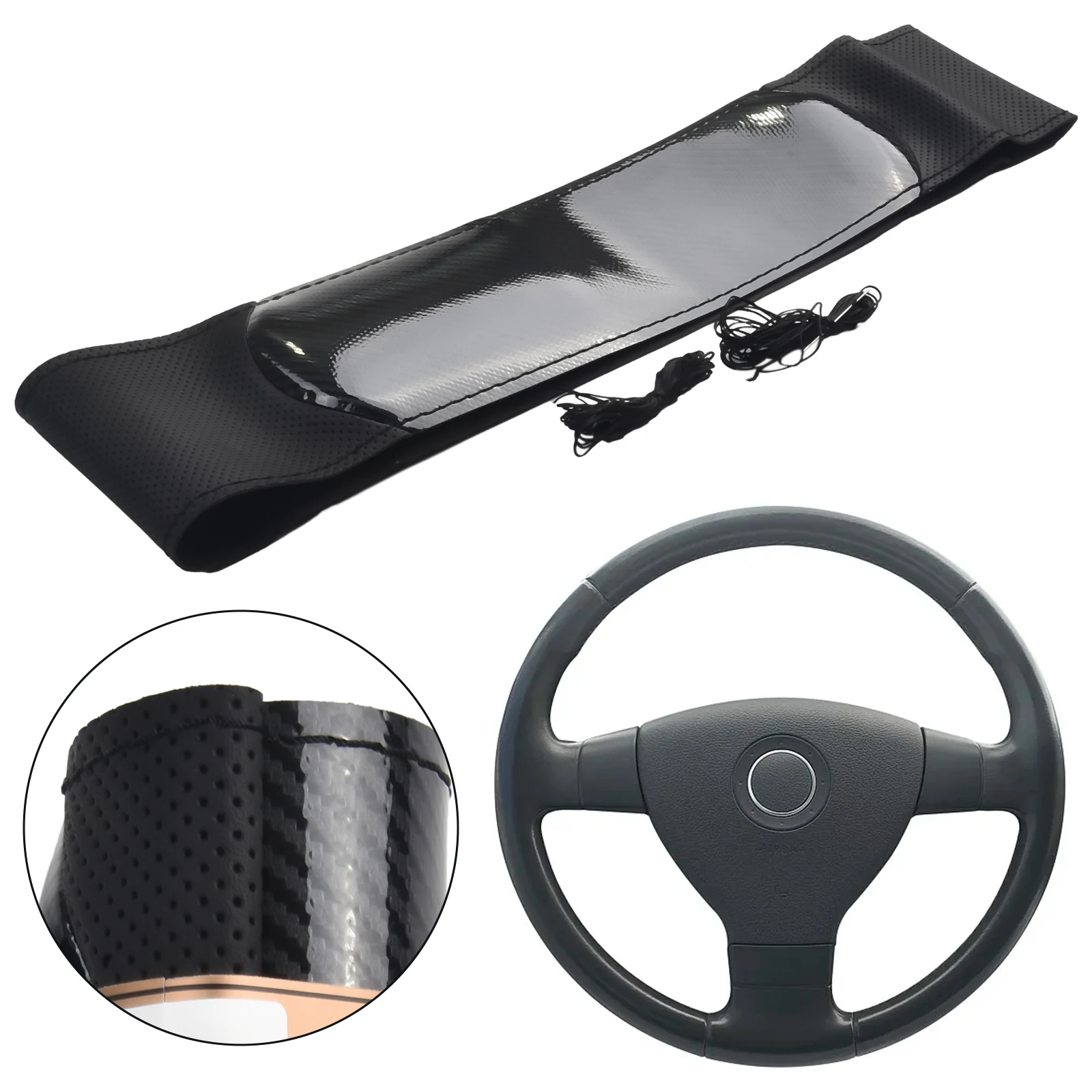 Чехол на руль, черный Автомобильный держатель для руля, прочный, 15/38 см, 1 шт.