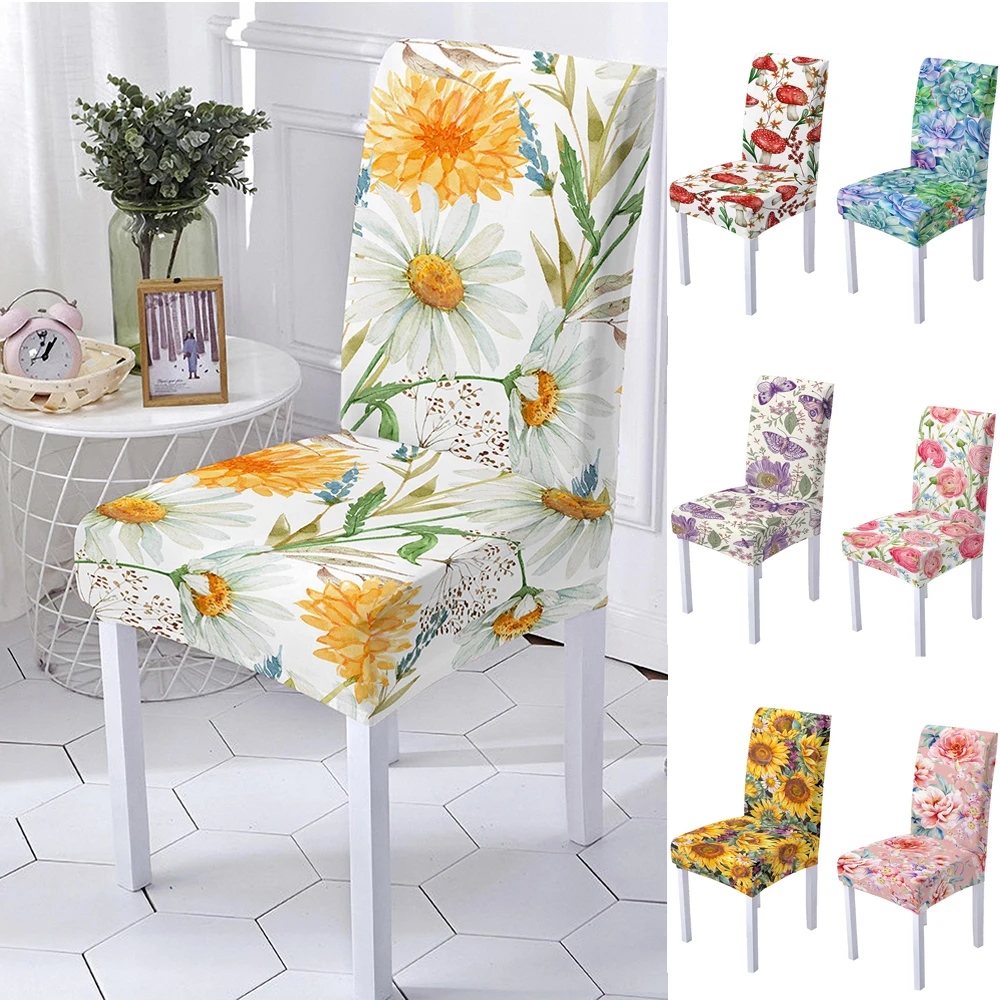 Чехол на стул из спандекса с цветочным принтом грибов для столовой, с ромашками, чехлы на стулья с высокой спинкой для украшения гостиной Ве...