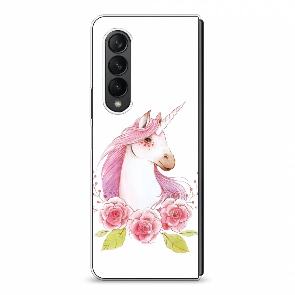 Чехол на Samsung Galaxy Z Fold 3 "Единорог цветы", Белый;розовый;серый, 2103650-1
