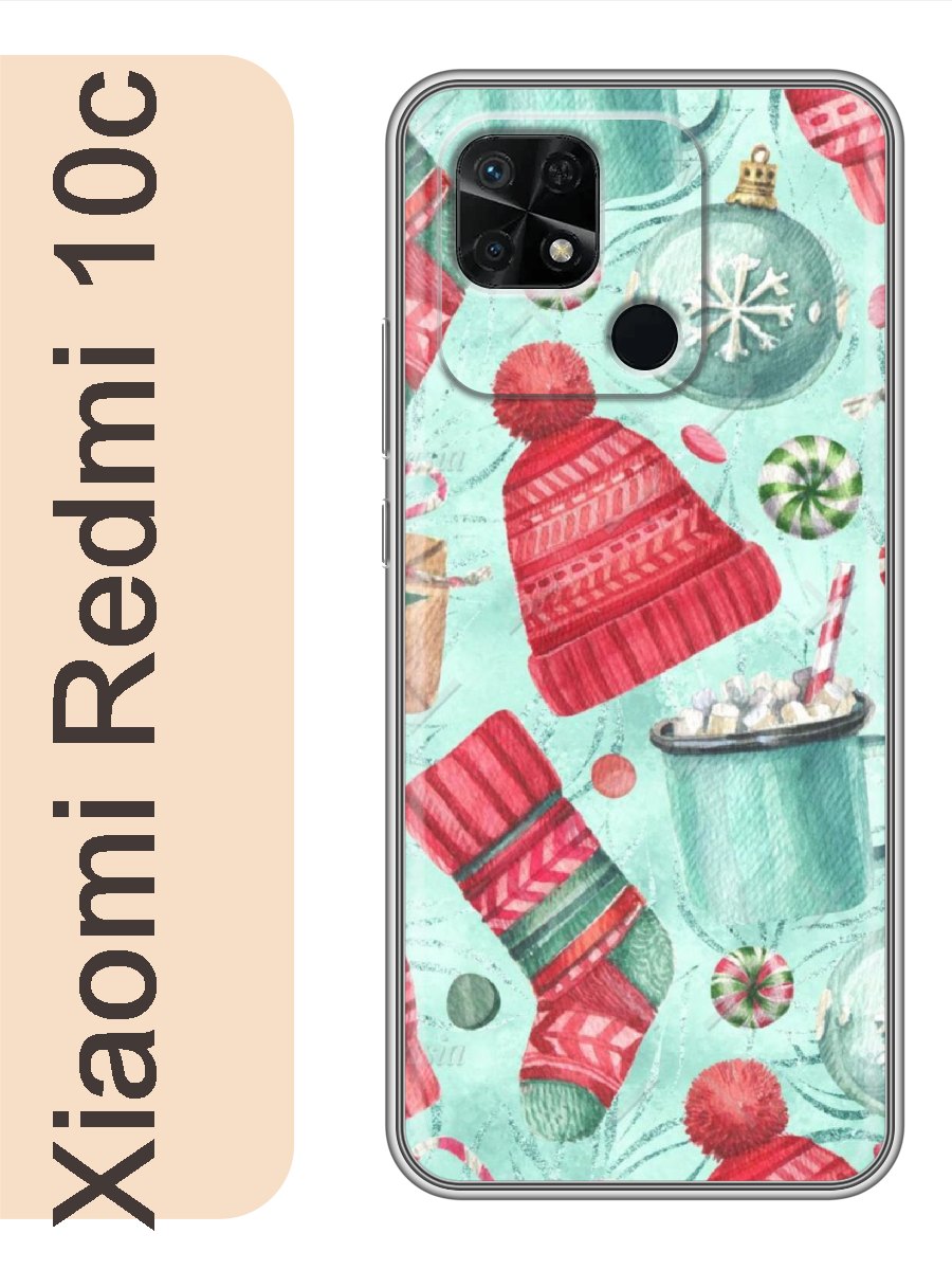 Чехол на Xiaomi Redmi 10c новогодний фон 414, Прозрачный, red10cnewy