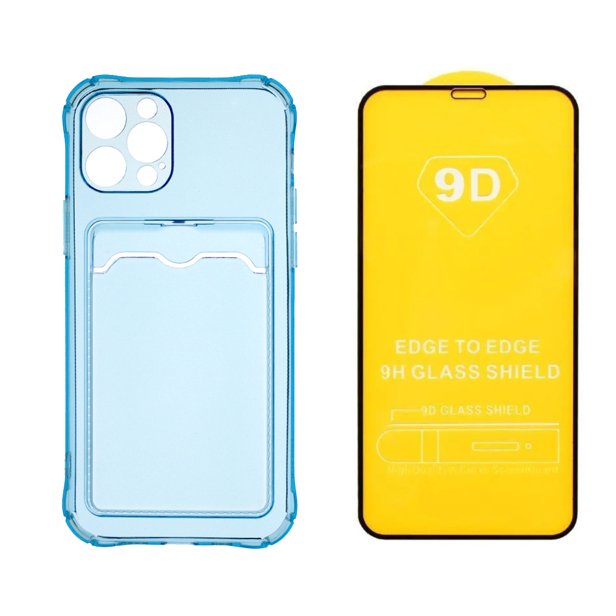 Чехол с карманом и стекло QVATRA для iPhone 13 Pro голубой, для iPhone 13 Pro голубой