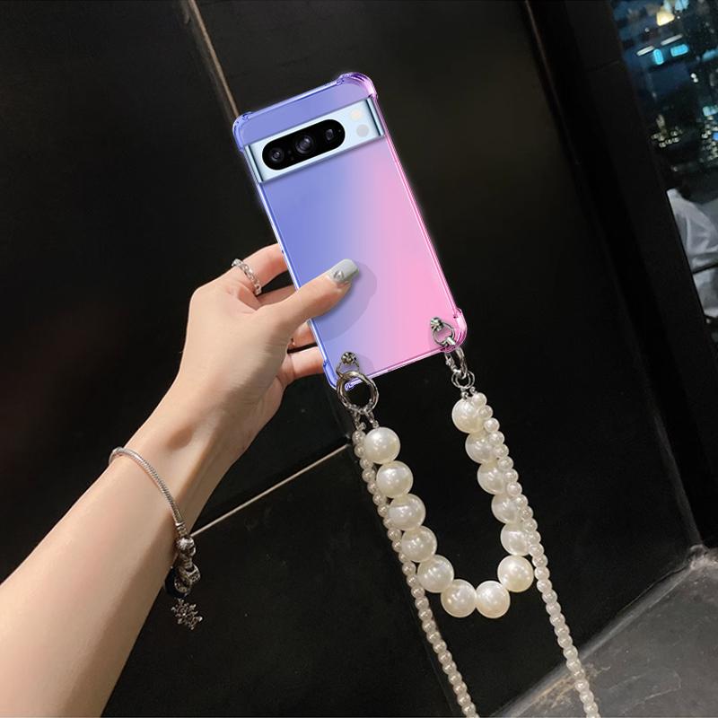 Чехол через плечо с жемчужным ремешком для Google Pixel 8 Pro, браслет-цепочка, прозрачные чехлы с градиентом для Google Pixel 7 6A, силиконовый защитный чехол для телефона Pixel 7 Pro