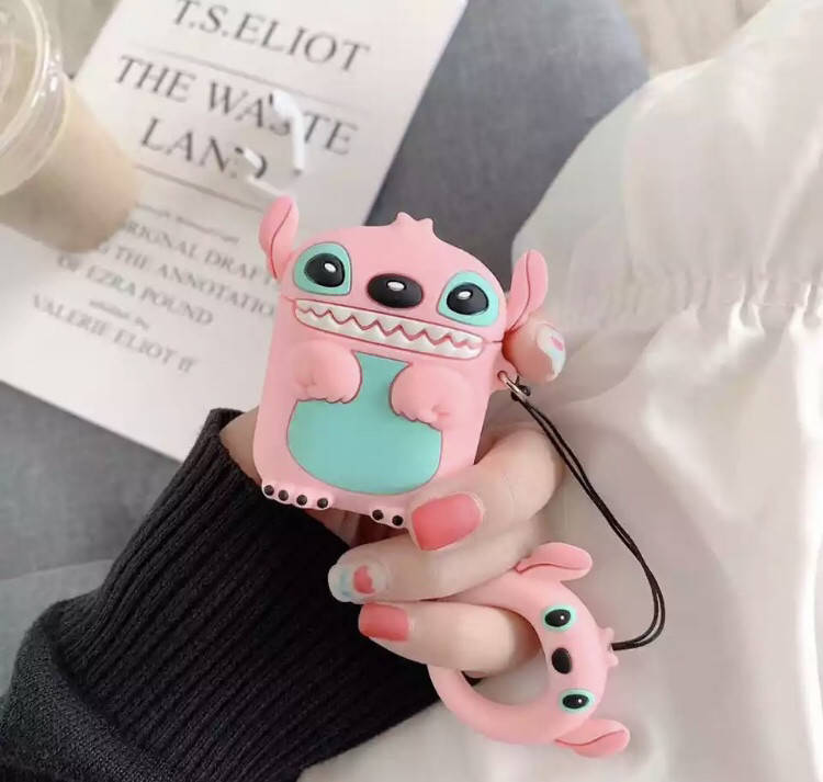 Чехол Apple AirPods 1,2 защитный кейс розовый Стич