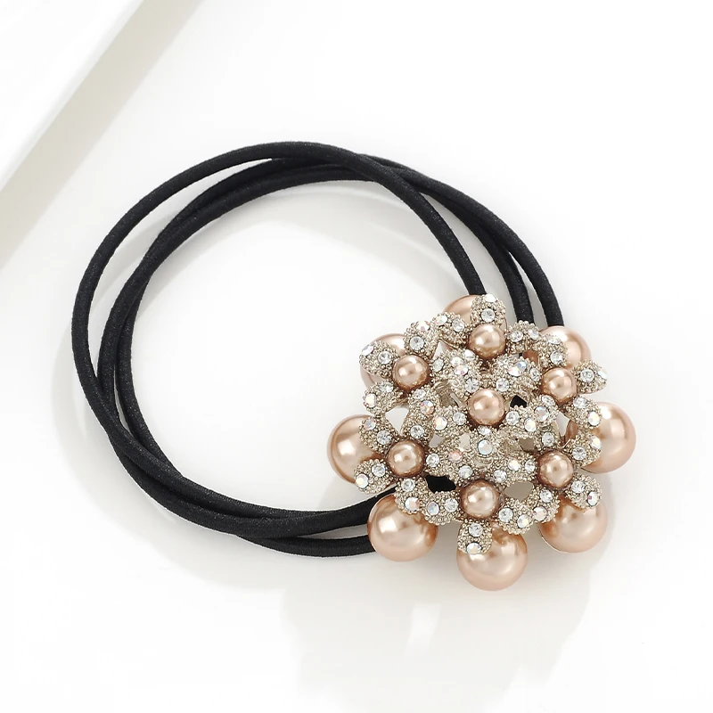 ZHANG TAI TAI 1PC Women Fashion Style Hair Ropes Flower Pearl Rhinestone Hair Bands Elastic Rubber Headwear Girls Headdress
