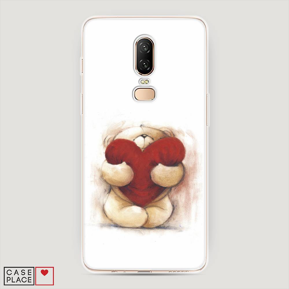 Чехол Awog на OnePlus 6 / ВанПлас 6 "Мишка с сердцем 1", Белый;красный;бежевый, 150550-6