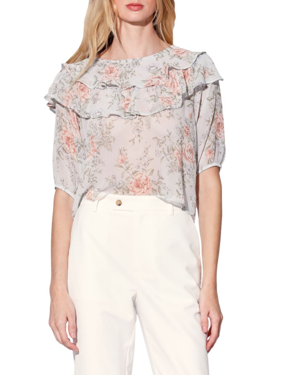 Блузка с цветочным принтом и оборками на воротнике Debra Walter Baker, цвет Sky Rose