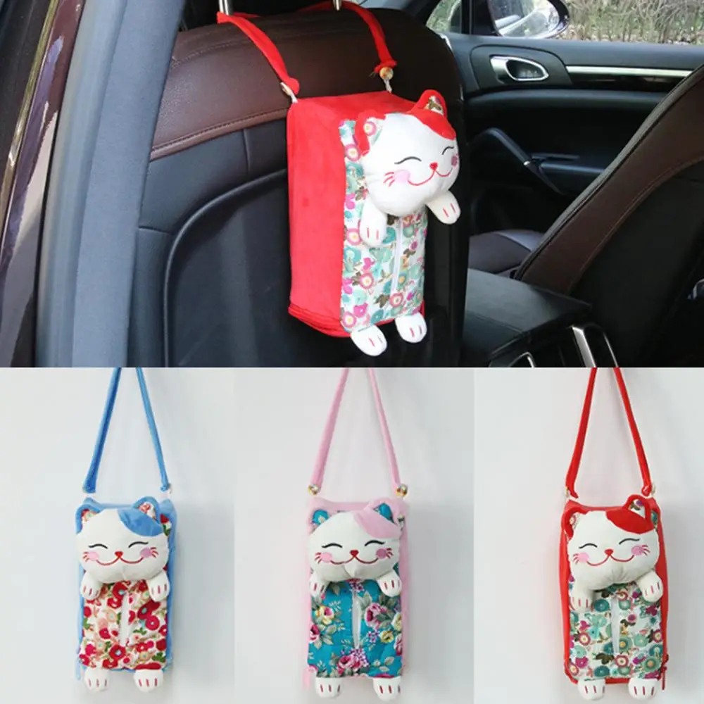 New Cartoon Cute Little Animal Tissue Box Holder Zipper Backseat Hanging Tissue Case for Auto Toys Interior Decoration