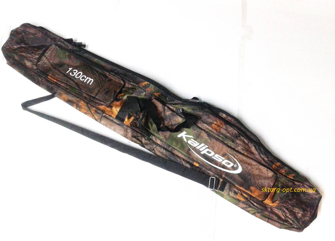 Практичный чехол продукции "Kalipso" расцветки дуб. Удобный чехол с широким наплечным регулируемым ремнем и местом под катушки. Два основных вместительных отделения, также дополнительные два накладной кармана позволяет хранить как удочки, так и приманки, комплектующие, рыболовные снасти.