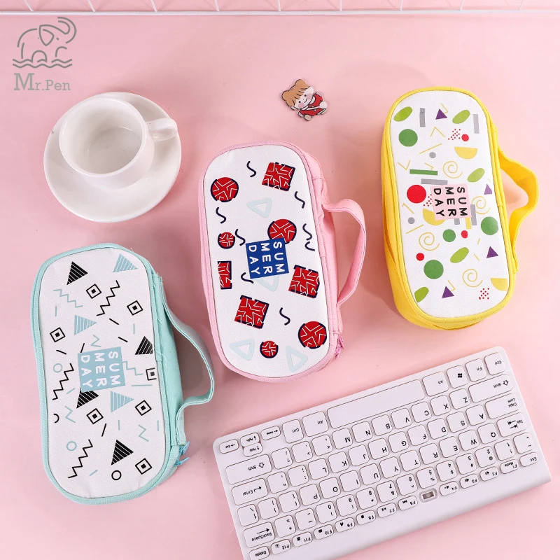Чехол Kwaii большой емкости для карандашей с мультяшным геометрическим рисунком, настольный держатель для хранения, чехол для карандашей, хол...