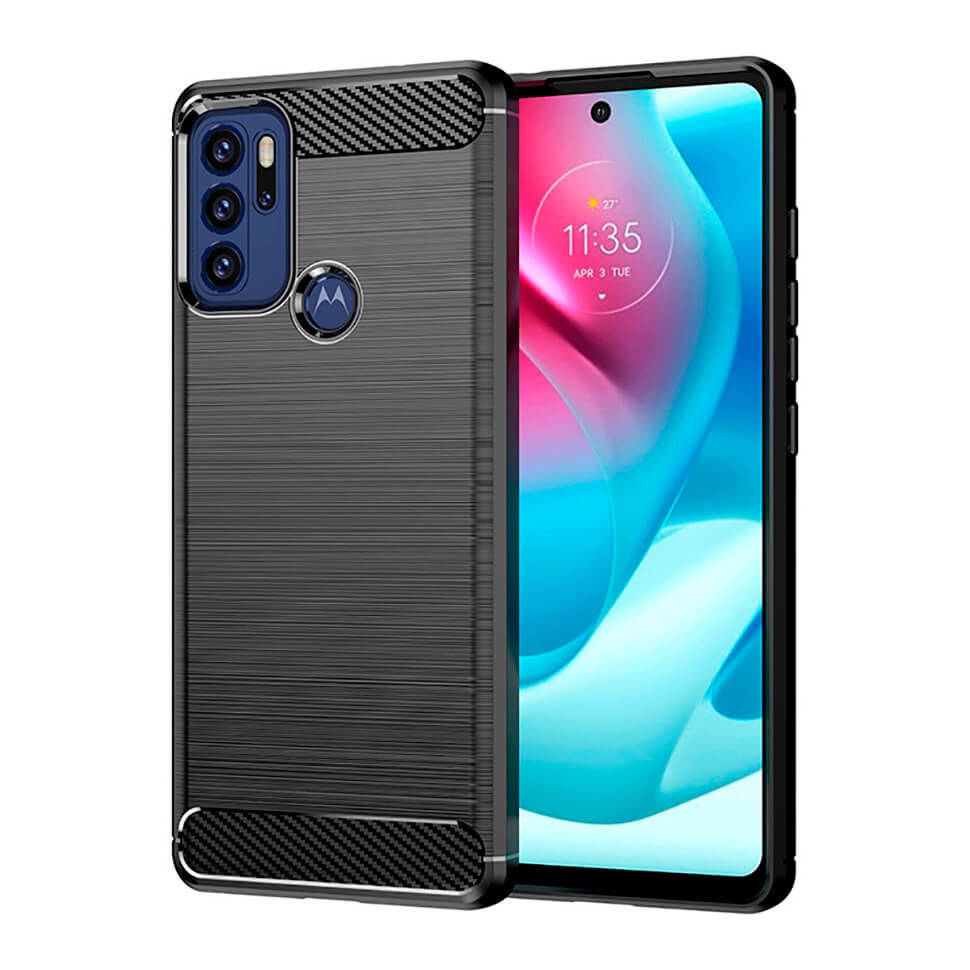 Накладка Lenuo Carbon Fiber для Motorola Moto G60, черного цвета.