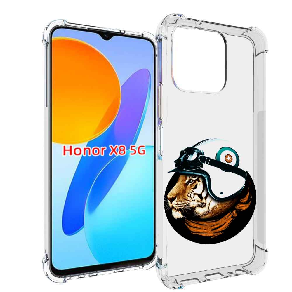 Чехол MyPads Тигр в шлеме для Honor X8 5G, Прозрачный, Tocco
