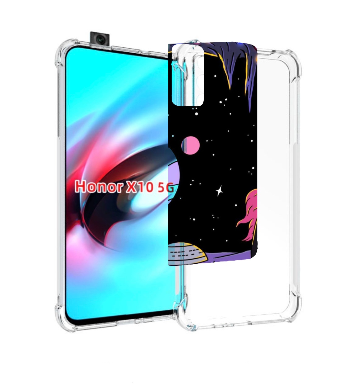 Чехол MyPads девушка с красными волосами в космосе женский для Honor X10, Прозрачный, Tocco