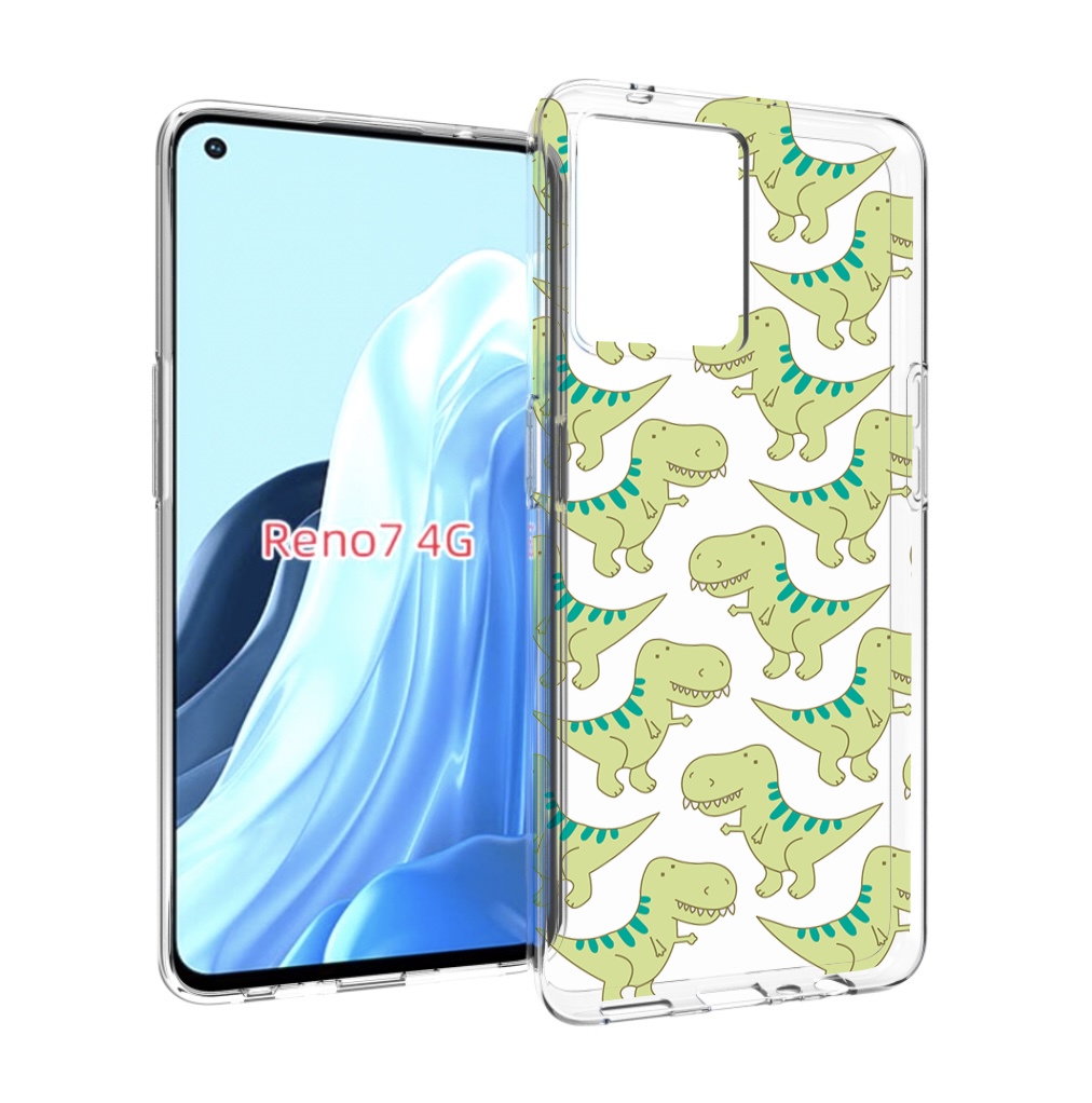 Чехол MyPads зеленые-динозаврики для OPPO RENO 7 4G, Прозрачный, Tocco