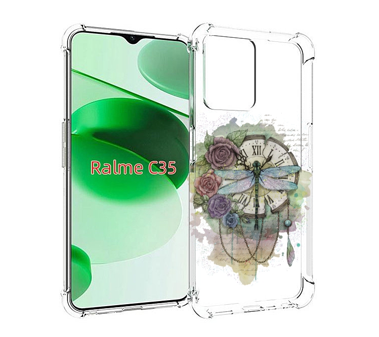 Чехол MyPads старинные часы в цветах для Realme C35 / Narzo 50A Prime, Прозрачный, Tocco