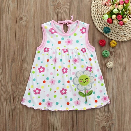 Utoimkio Toddler Girl Dresses Clearance Sleeveless Casual Dresses for Girls Toddler Cute Baby Cotton Flower Children Dot Striped Tees Dress T-Shirt Vest