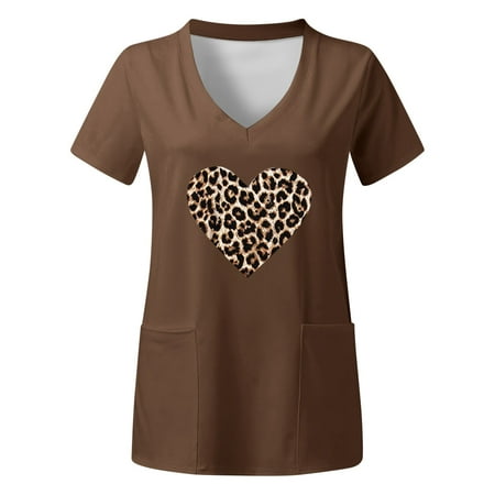 Printed Scrub Tops Women Summer Plus Size Top V-Neck Short Sleeved Pockets American Flag Prints Nursing Uniforms