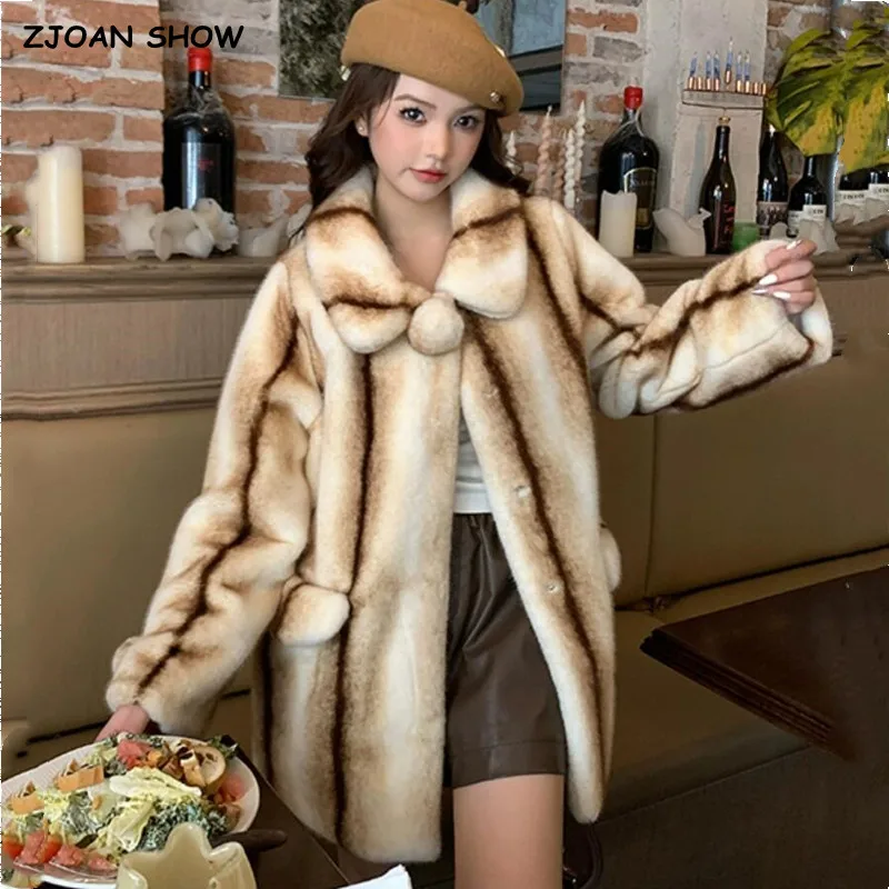 2023 зимнее пальто из искусственного меха норки с отворотом и градиентной полосой, женская теплая пушистая куртка средней длины с длинным рукавом, верхняя одежда
