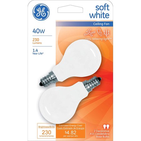 GE Lighting 71394 Candelabra Base A15 Ceiling Fan Bulb 40W Soft White 2-Pack