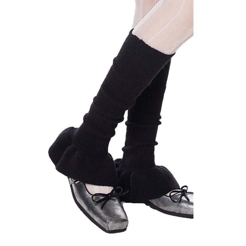 Чисто кремовые носки для осени и зимы, носки до середины икры, носки-бутоны с легким клешем, широкие, милые и универсальные 1 pair чёрный