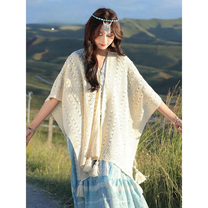 Чистый цвет накидка этнический стиль шаль женская верхняя одежда вязаная Юньнань Лицзян Синьцзян Сицзан путешествия фото плащ пальто M белый