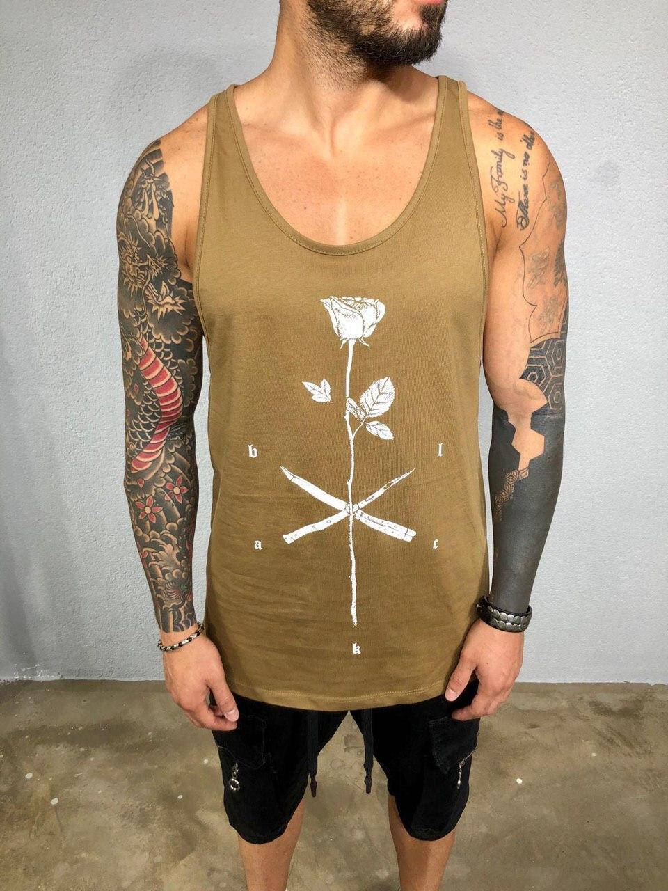 Чоловіча коричнева майка з принтом розочки та ножа молодіжна Black Island