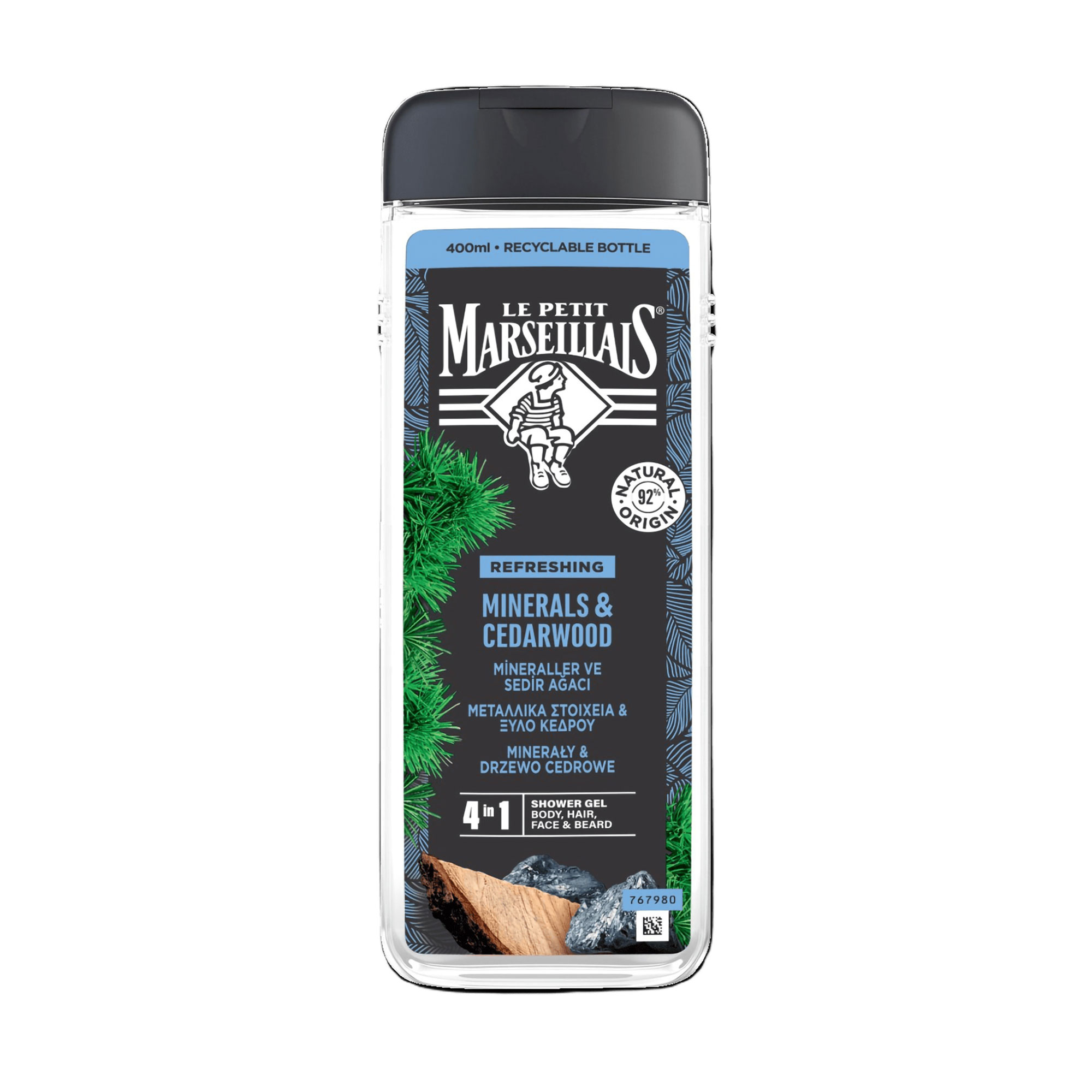 Чоловічий гель-шампунь для тіла, волосся, обличчя і борода Le Petit Marseillais Кедр та мінерали