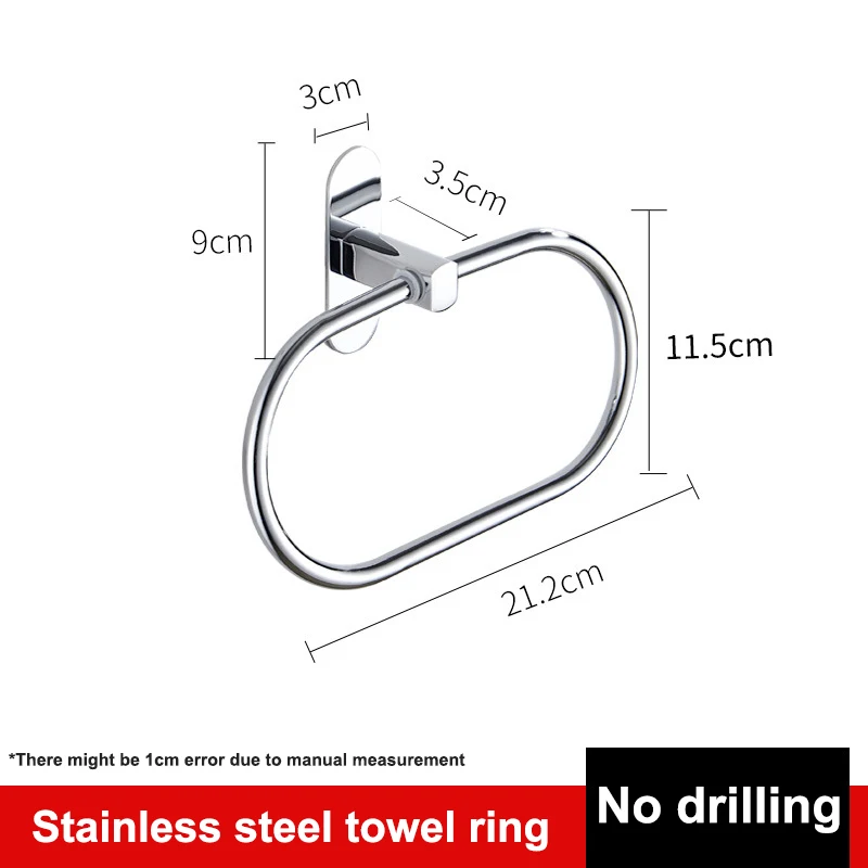 Wall Mount Towel Rack Bar Stainless Steel Adhesive No Drilling Bathroom Towel Holder Shelf Silver