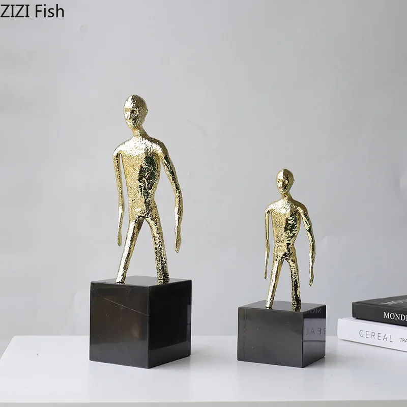 Чугунная скульптура персонажа, оцинкованные металлические украшения, мраморная основа, абстрактные художественные статуи, фигурки, украшения, ремесла, миниатюры