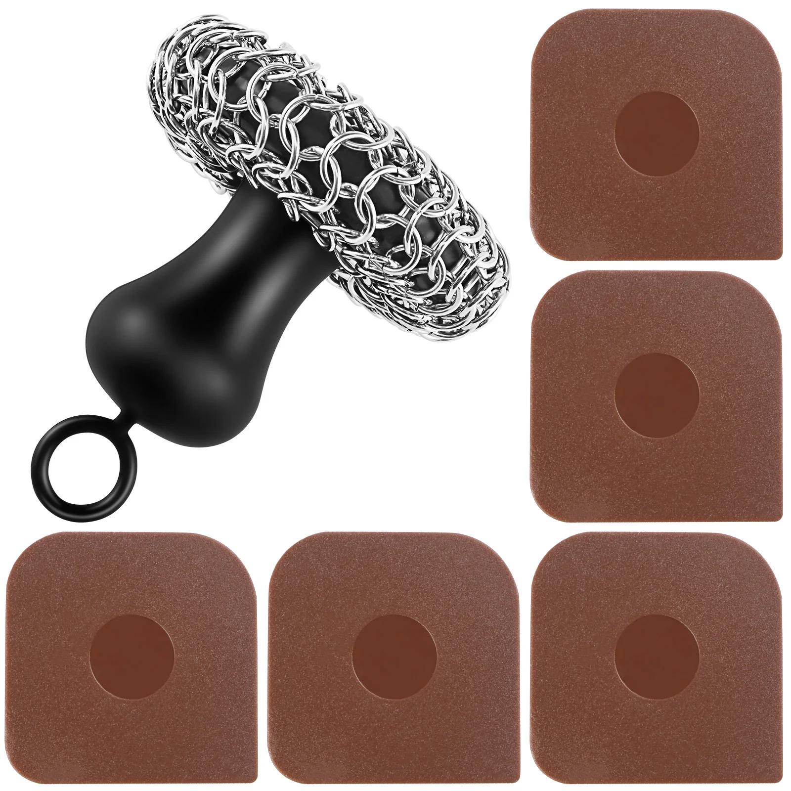 Чугунный скребок с 5 скребками, набор для очистки чугунных сковородок, термостойкий чугунный скребок Chainmail с силиконовой ручкой