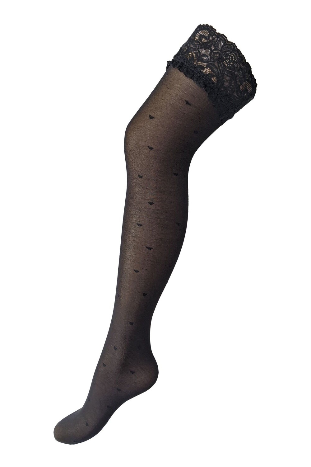 Чулки любви в стиле декаданс плотностью 15 ден с сердечками Pour Moi, черный