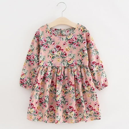 Augper Toddler Dress Winter Fall Dresses Clearance Toddler Kids Baby Girls Floral Print Casual A-Line Twirly Dress Party Princess