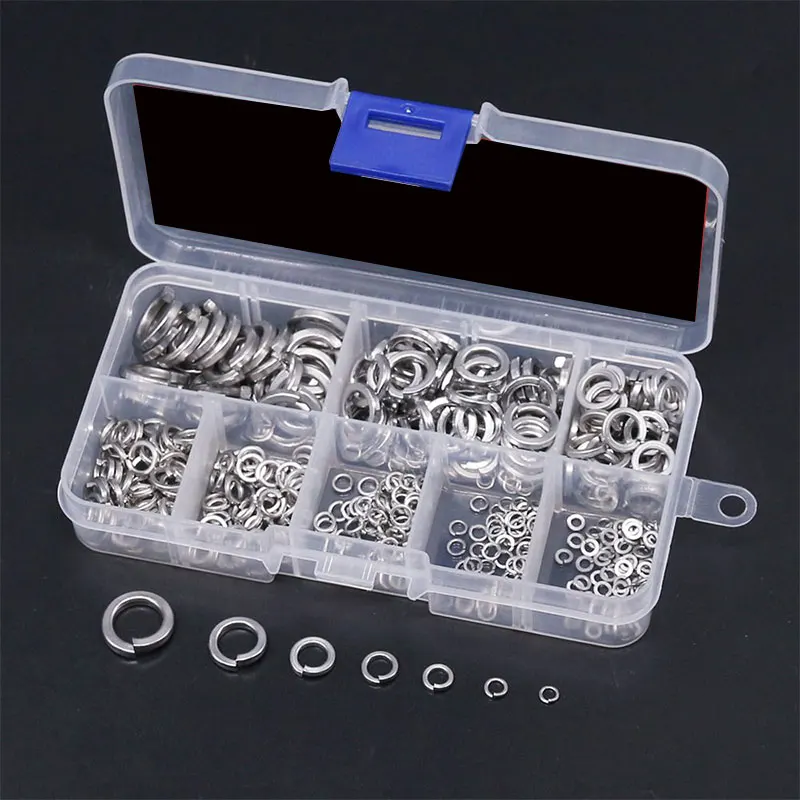 Шайба с пружинным замком, шайба с пружинным замком из нержавеющей стали 304, набор в ассортименте (410-шт, 8 размеров)
