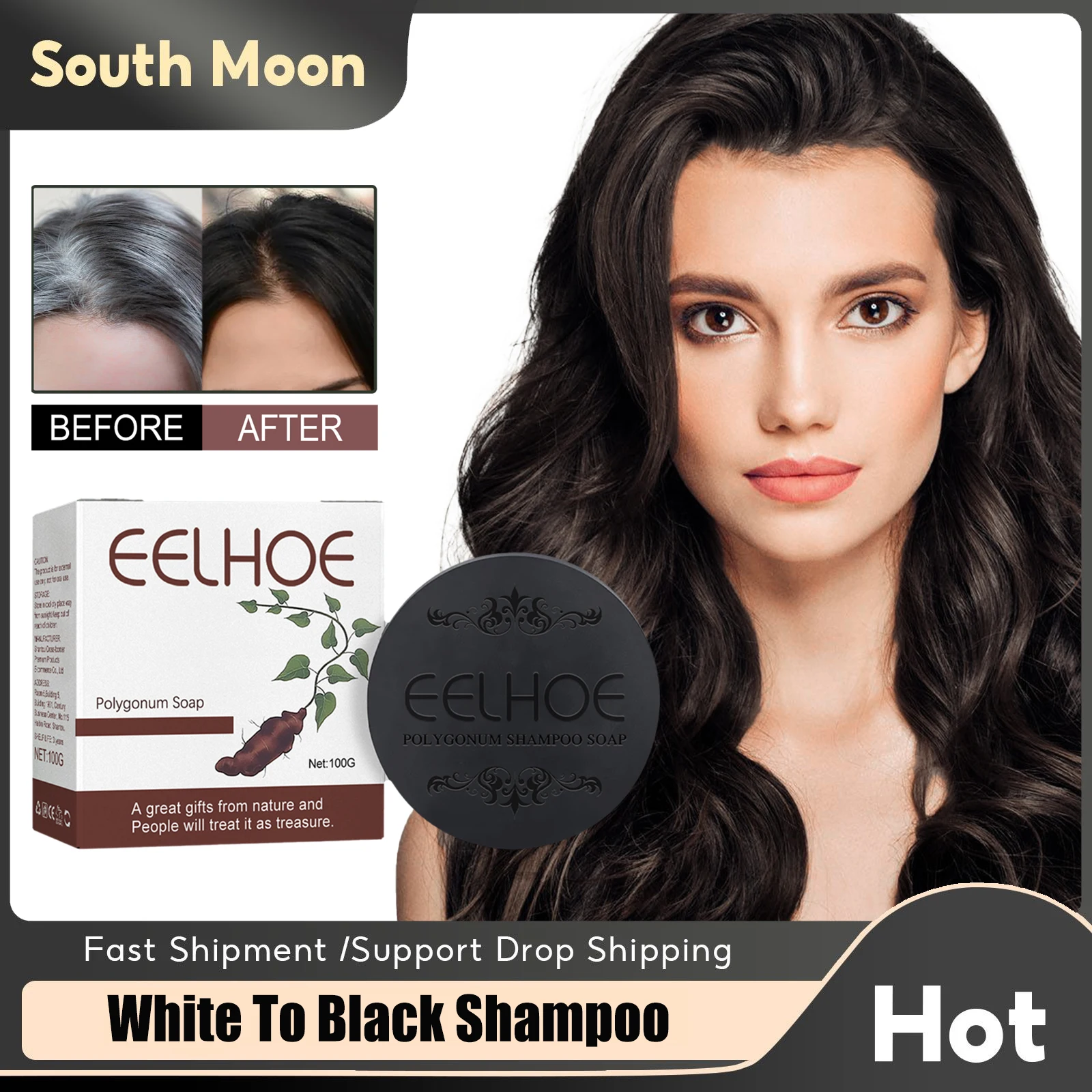 Шампунь-брусок для затемнения волос, черный шампунь против выпадения волос, восстанавливает цвет волос, питает корни волос, белый и черный шампунь Polygonum