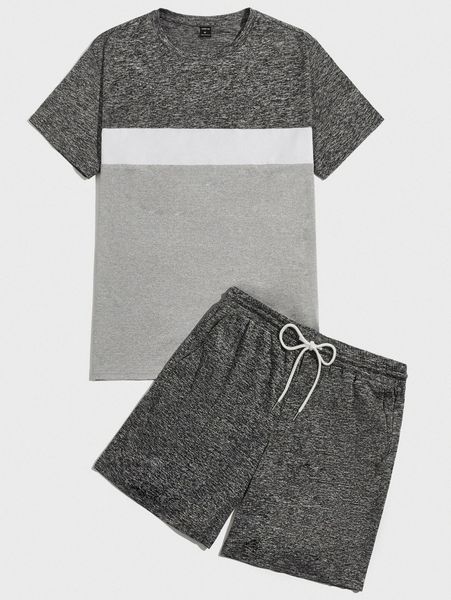 men tracksuits fashion design t-shirt +pants 2 piece setssummer mens tracksuit casual shorts sets fashion trend short sleeve letters embroid, Gray