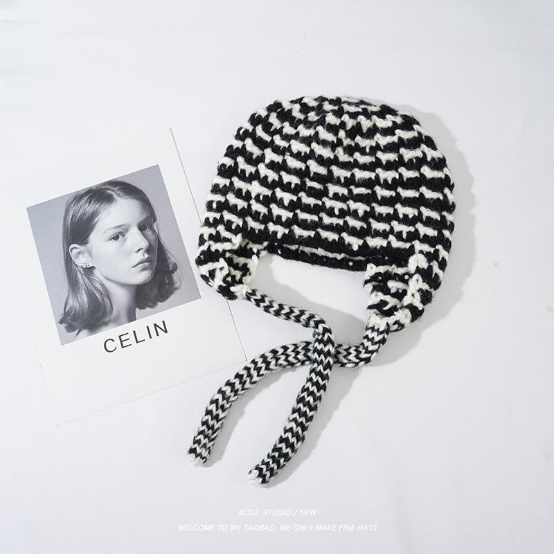 Шапка Женская Зимняя Милая и Симпатичная Девочка Утолщенные Защитники Ушей Осень и Зима Универсальная Вязаная Шапка Теплая Толстая Шерстяная Шапка Adult elastic