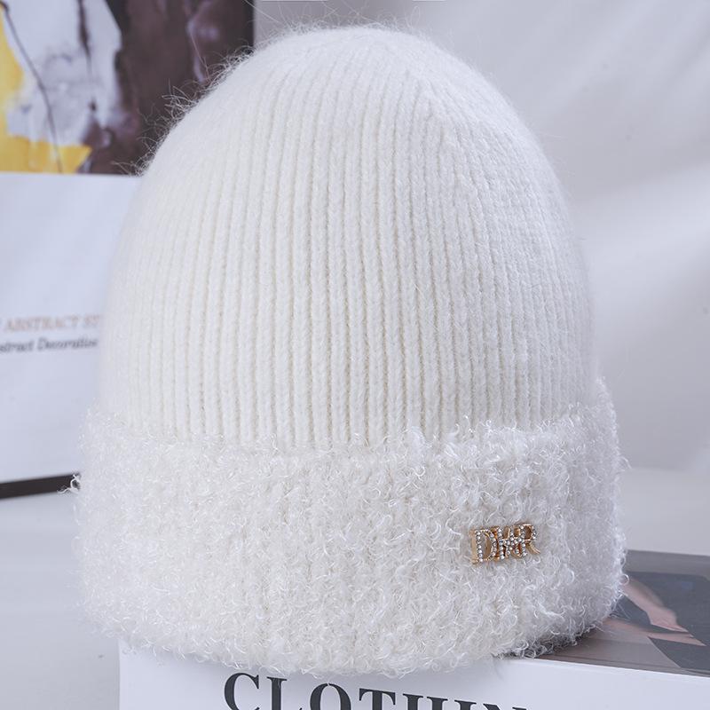Шапка Женская Новая Теплая Вязаная Шапка из Кроличьего Меха Ветрозащитная Защита Ушей Плюшевая Шерстяная Шапка белый