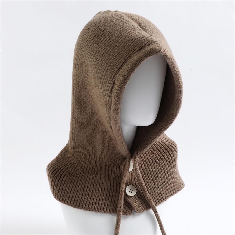 Шапка-балаклава вязаная шерстяная однотонная универсальная с завязками и пуговицами, шарф интегрированный, зимний шарф bottom width 33cm high 44cm