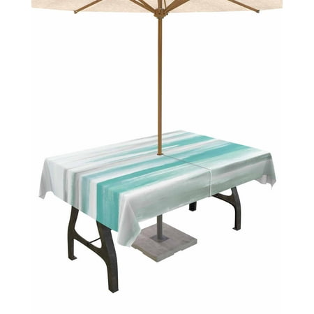 Lsrtoss Outdoor Tablecloth with Umbrella Hole & Zipper Teal Grey Rectangle Tablecloth 52x70 Inch Modern Oil Painted Striped Abstract Art Patio Table Cover Waterproof Table Cloth for Picnic/Party