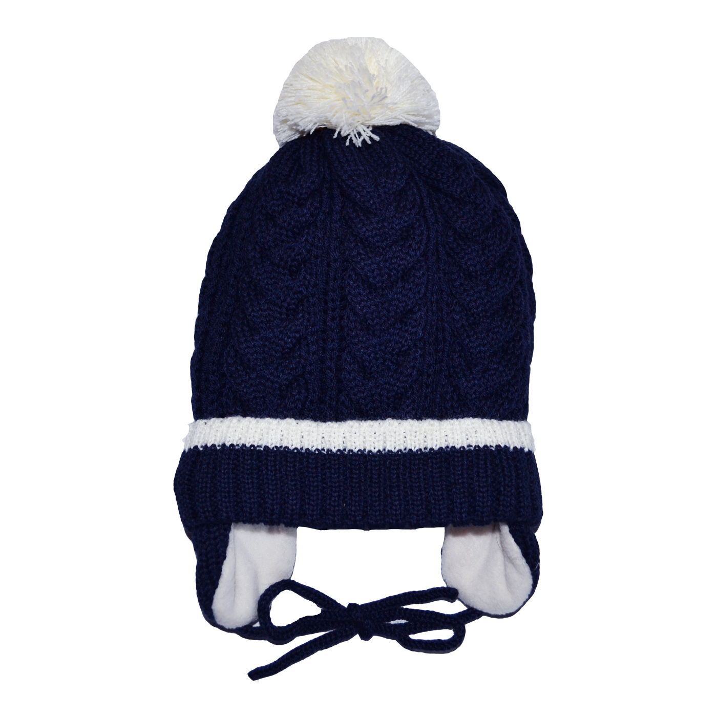 Шапка для мальчиков и девочек BRETT выполнена в ярких цветах с помпонами, на завязках. Вязка косичка. Подкладка 100% полиэстер. Верх 50% шерсть, 50% акрил.